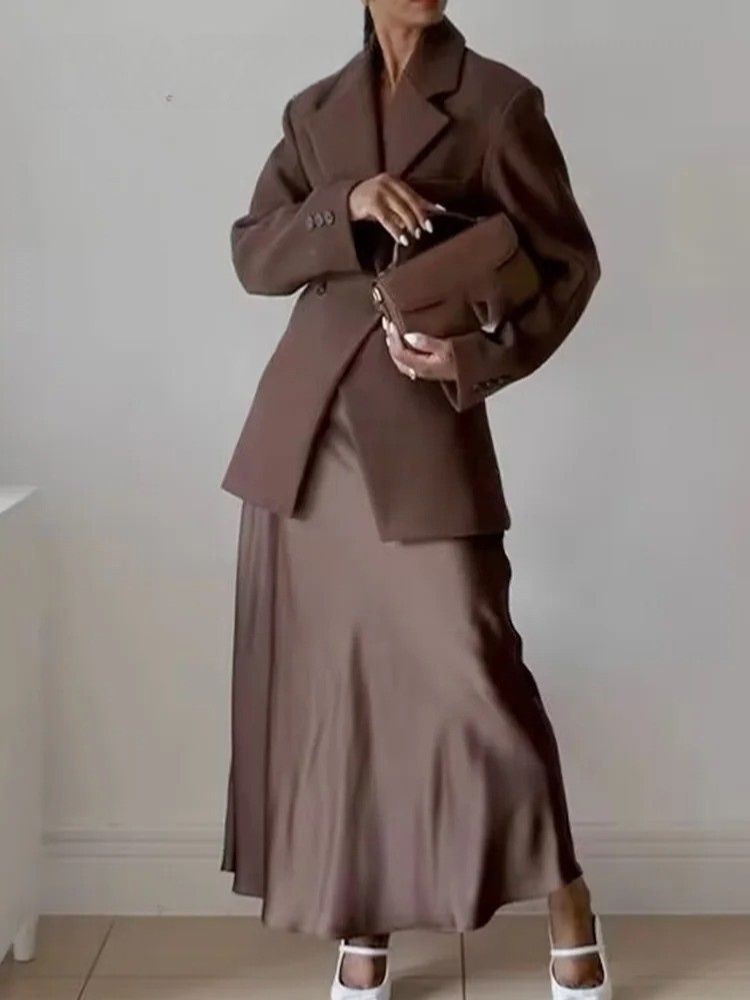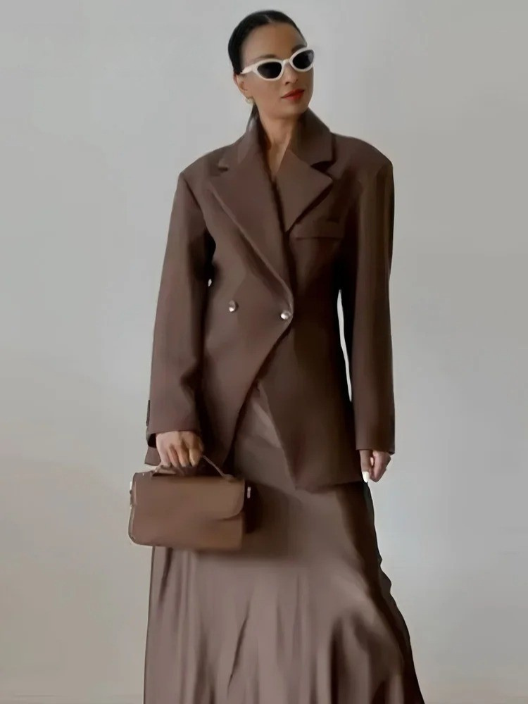 Werten Sie Ihre Garderobe mit diesem klassischen braunen Blazer mit Umlegekragen auf – ein Must-have für mühelose Eleganz. Mit seiner strukturierten Passform, den langen Ärmeln und den praktischen Taschen vereint dieser Blazer Mode und Funktionalität. Der zweifach geknöpfte Verschluss vorne sorgt für vielseitige Stylingmöglichkeiten, egal ob Sie sich für das Büro fertig machen oder sich für einen lässigen Tag im Freien in Schichten kleiden.