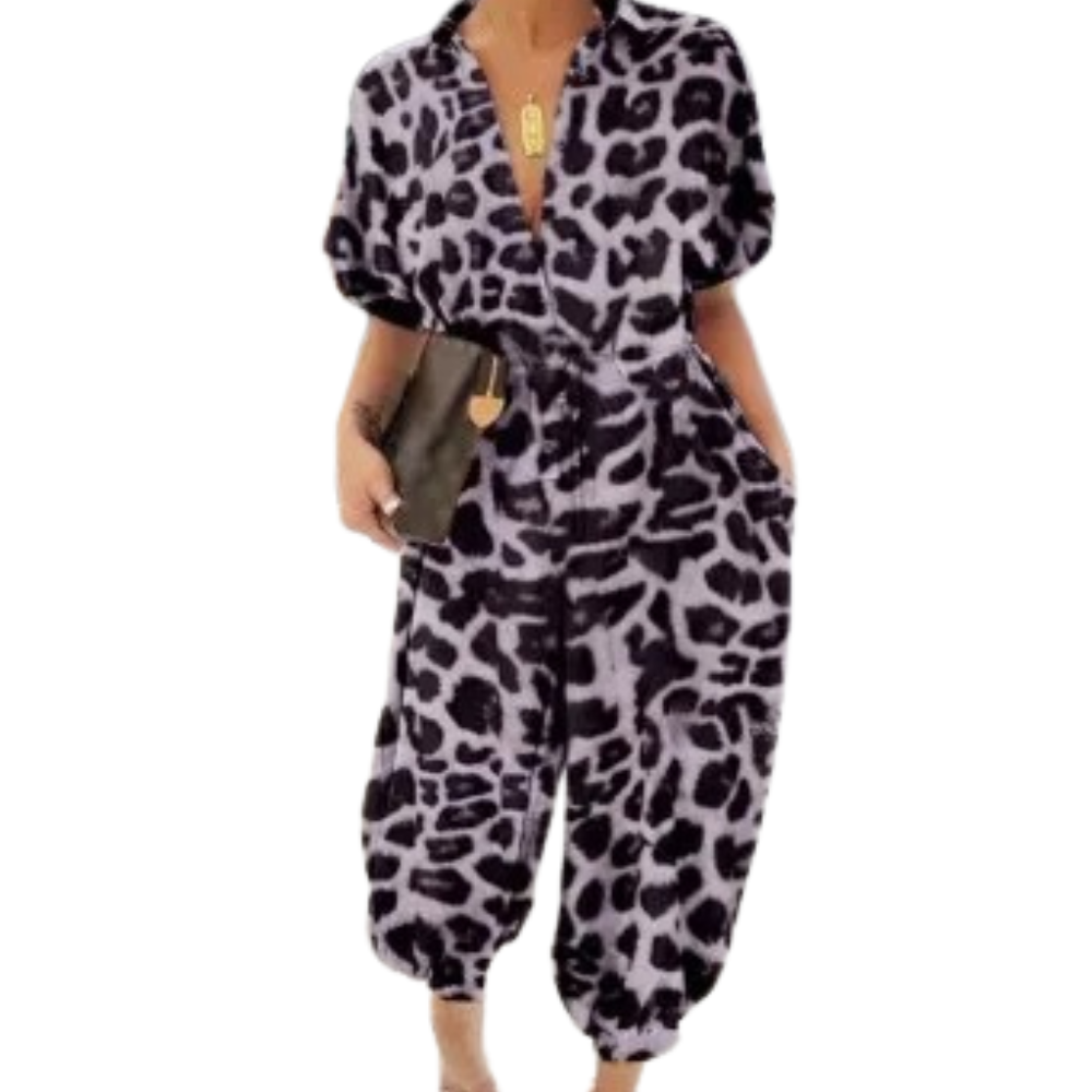 Zeigen Sie Ihre wilde Seite mit diesem stylischen Leopard Print V-Neck Knot Romper – die perfekte Mischung aus Komfort und Mode. Mit seinem schmeichelhaften V-Ausschnitt, dem verstellbaren Knoten vorne und den fließenden kurzen Ärmeln ist dieser Strampler ein Muss für jeden Kleiderschrank. Das leichte, atmungsaktive Material sorgt den ganzen Tag über für Komfort, während der verspielte Leopardenprint Ihrem Look eine auffällige Note verleiht. Außerdem verfügt er über praktische Seitentaschen für zusätzlichen Komfort!
